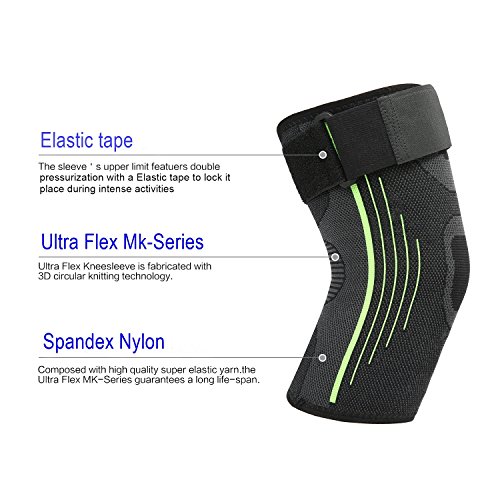 Knee Compression Sleeve Support, Single GLAREE Knee Brace For CrossFit & Injury Recovery and Prevention Fit Men and Women M size