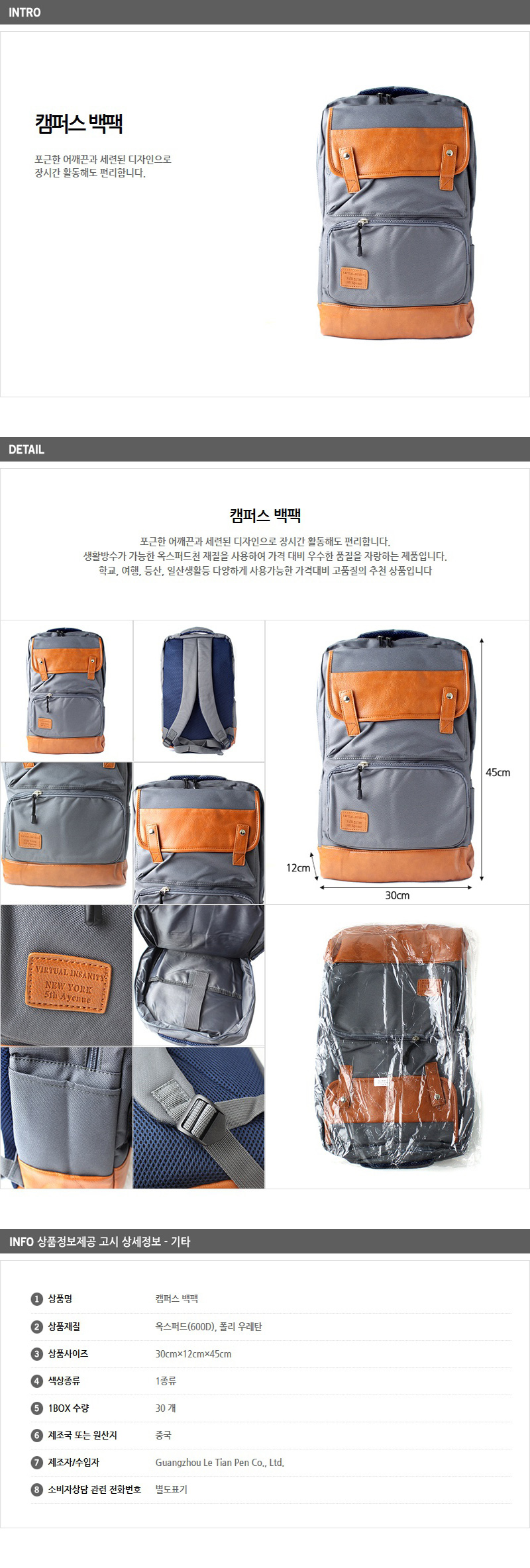 - 품명 및 모델명캠퍼스 백팩