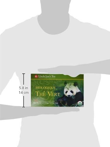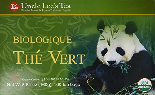 -. Binding : Health and Beauty -. Brand : Uncle Lee's -. Feature : Uncle Lee's Green Tea (camellia sinensis) comes from high in the mountains of the Fujian Province of China and is grown without pesticides, with natural fertilizer and with careful attention for the preservation of the ecosystem -. Label : Uncle Lee's -. Manufacturer : Uncle Lee's -. MPN : 679050 -. PackageQuantity : 1 -. PartNumber : 679050 -. ProductGroup : Health and Beauty -. ProductTypeName : HEALTH_PERSONAL_CARE -. Publisher : Uncle Lee's -. Studio : Uncle Lee's -. Title : Uncle Lee's Organic Green Tea -- 100 Tea Bags net wt 5.64 oz (160g)