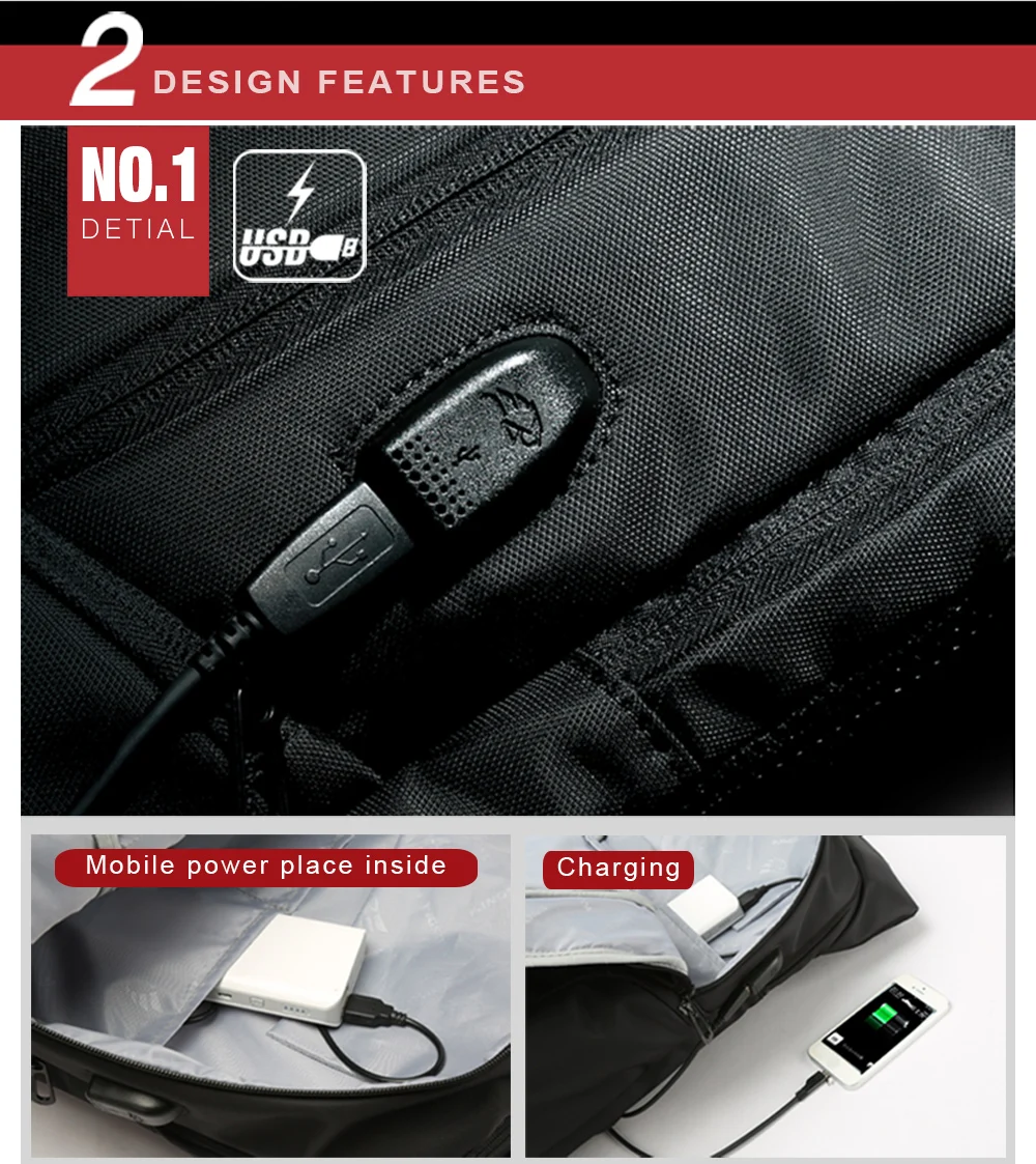 3.Connect your phone with the USB interface outside the backpack