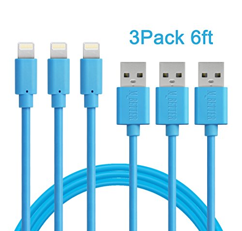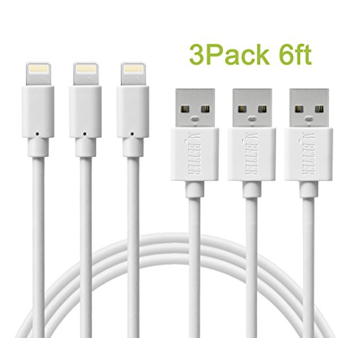 Charger(TM) 3Pcs 6Ft Charging Cable, Syncing and Charging cord for iPhone 6s Plus/ 6 /SE/5s 5c 5, iPad Air / mini / 4th Gen, iPod nano / touch Lifetime Guarantee (White)