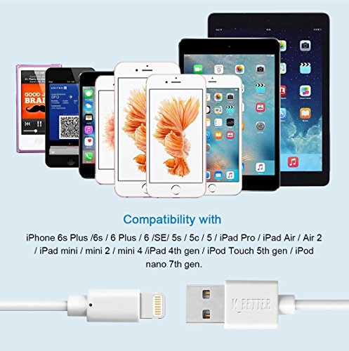 [Compatibility] Passed a wide range of tests, ensures complete charge and sync compatibility with iPhone 6s Plus / 6s / SE/6 Plus / 6 / 5s / 5c / 5 / iPad Pro / iPad Air / Air 2 / iPad mini / mini 2 / mini 4 / iPad 4th gen / iPod Touch 5th gen / iPod nano