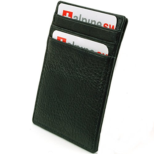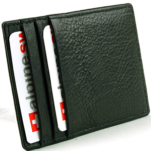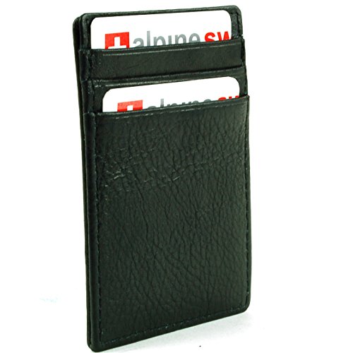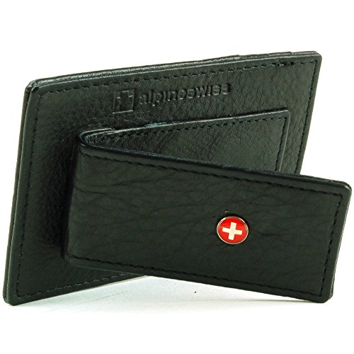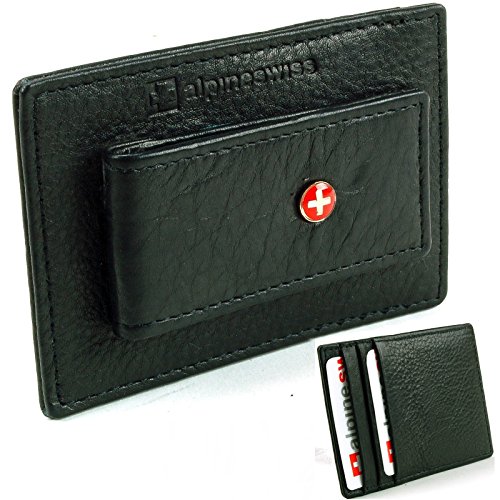 Alpine Swiss Men's Top Grain Leather Slim Line Money Clip Wallet Black