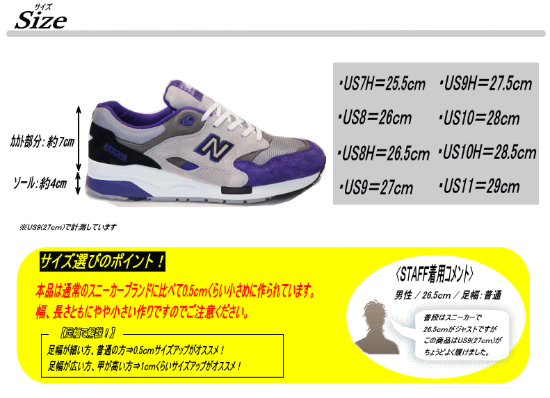 | サイズ | 作り⇒やや小さめ 【サイズ選びのポイント!】 足幅が細い方、普通の方⇒0.5cmくらいサイズアップがオススメ! 足幅が広い方、甲が高い方⇒1.0cmくらいサイズアップがオススメ! |