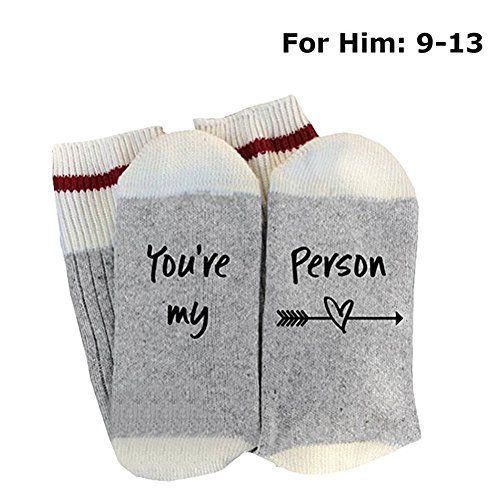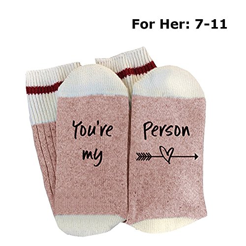 -. Binding : Apparel -. Brand : Ruanyu -. Department : womens -. Feature : Fabric: cotton, acrylic, spandex / Knitting Words: IF YOU CAN READ THIS. BRING ME SOME WINE/ BRING ME A GLASS OF WINE / Size: Free size. Suitable for women US shoe size 6-10½ / High Quality: These socks have the words stitched directly into them during the manufacturing process / Funny Gift: These just make the greatest gifts the best Valentine's Day gift you are my person -. IsAdultProduct : 0 -. ProductGroup : Apparel -. ProductTypeName : SOCKSHOSIERY -. Title : Ruanyu Valentine's Day Casual Letter P.R.Inted You're My Person Socks Funny Crew Party Novelty Sock