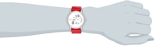 -. Feature : Silver-tone watch with red leather band featuring white dial with Roman numeral hour makers / 33 millimeter stainless-steel case with antireflective-sapphire dial window / Swiss-quartz movement with analog display / Patent-leather band with buckle closure / Water resistant to 165 feet