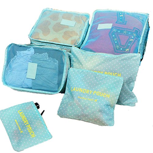 -. Title : 6Pcs Waterproof Travel Storage Bags Clothes Packing Cube Lage Organizer Pouch-Sky Blue