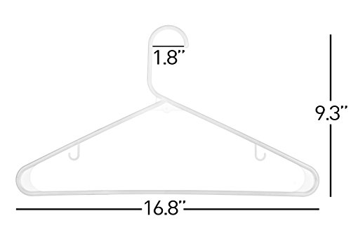 -. Binding : Kitchen -. Brand : Neaties -. Color : White -. EAN : 0780456998167 -. Feature : Neaties Plastic Hangers are Made in the USA and sold EXCLUSIVELY by USAtoZ / Everyday Standard Duty Adult Hangers - Excellent Quality / Double Hook Feature with Reinforced Inner Shoulders / Single Unit Dimensions Approximately 16.8"x9.3"x.25" With 1.8" Head Diameter / Value Set of 60 for Complete Closet -. IsAutographed : 0 -. Label : Neaties -. Manufacturer : Neaties -. ProductGroup : Home -. ProductTypeName : HOME -. Publisher : Neaties -. Size : Hooks (No Bar) -. Studio : Neaties -. Title : Everyday White Plastic Hangers w/ Hooks (No Notches), USA Made Long Lasting Plastic Adult Hangers, Set of 60 -. UPC : 780456998167