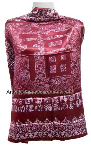 Product Description Chinese Scarf - Good Fortune Symbols: This beautiful Chinese scarf is decorated with traditional Chinese Good Fortune symbols. A great gift for any woman.