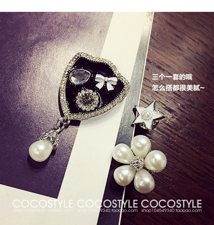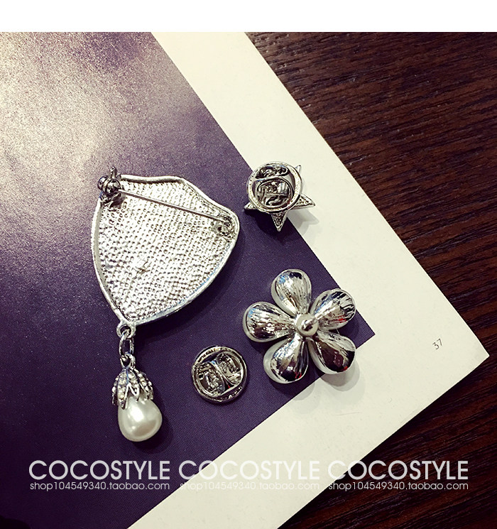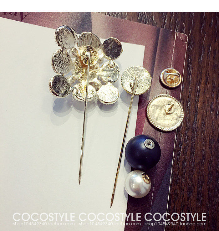 黑白珍珠胸针宽/高:2.2*7.6cm 珍珠5胸针宽/高:1.4*5.7cm 花朵圆牌直径:1.7cm