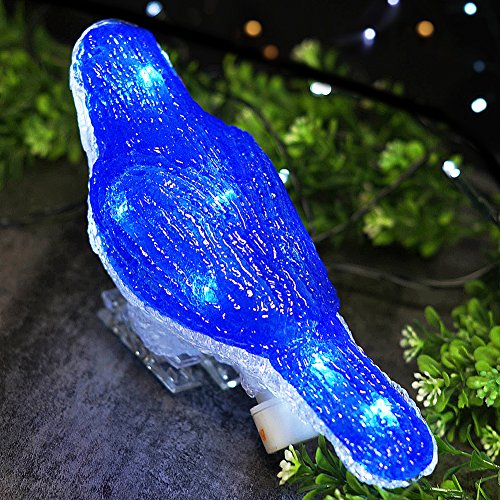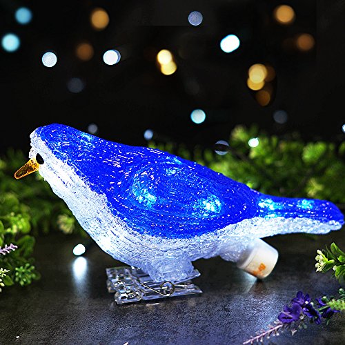 - 8.5" LED ACRYLIC BIRD FIGURINE LIGHTS UP CHRISTMAS SPIRIT - Bring some fairy tale magic to your Christmas with our Acrylic Bird Figurine Light! - Stands 8.5" long with two clips, made of high quality acrylic resin in ice look to create a true icy winter scene - Look fantastic as part of a larger display, or alternatively clipped to the branches of your wooden Christmas tree to provide a splash of color and a glittering festive glow, Day and Night!