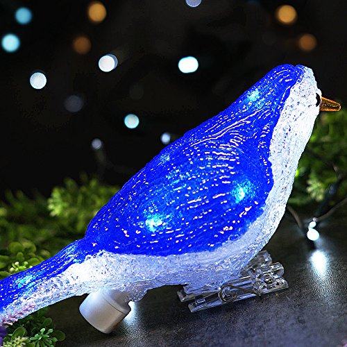 BRIGHT ZEAL 8.5" LED Battery Operated Christmas Tree Birds with Clips (Blue & White Acrylic Bird) - Garden Statues and Sculptures - Christmas Figurines Decorations Clearance - LED Bird Sculpture Decor