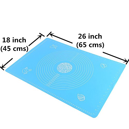 TANKING Extra Large Silicone Baking Mat for Pastry Rolling with Measurements Pastry Rolling Mat,26"x18"/65x45cm Reusable Non-Stick Silicone Baking Mat (Blue)