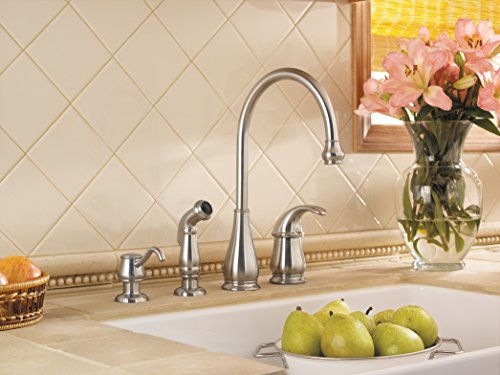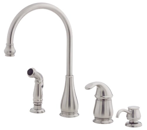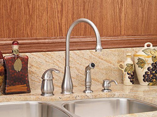 Pfister LG264DSS Treviso 1-Handle Kitchen Faucet with Side Spray & Soap Dispenser in Stainless Steel, Water-Efficient Model