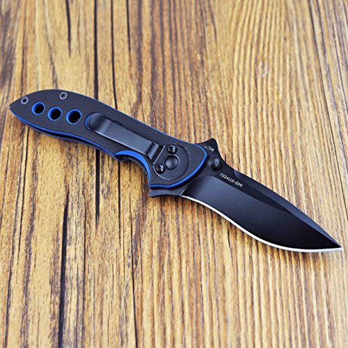 SANRENMU SRM 8CR13MOV STEEL FAST OPENING OUTDOOR POCKET FOLDING KNIFE WITH CLIP,BLACK & BLUE G10 GRIPS,DROP POINT,PLAIN EDGE,2-3/4 INCH BLADE