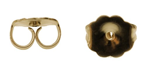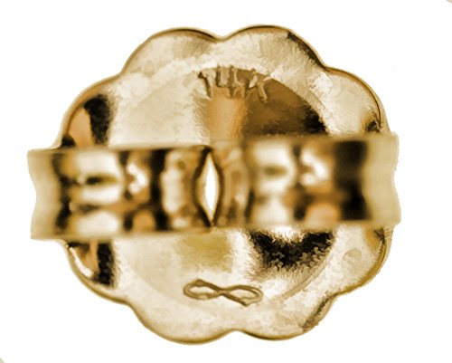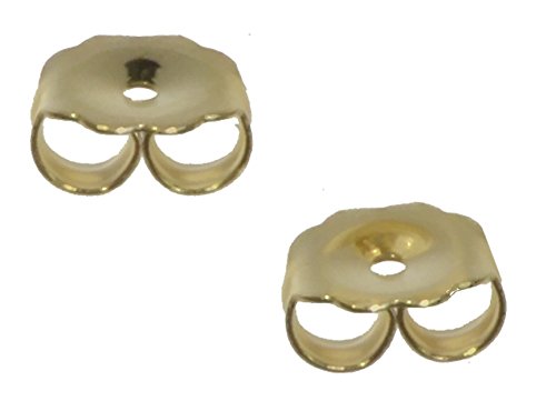 This is one pair of 14k yellow gold earring backs ; larger size for earring clutch in 14k; It enables easier secure backs to your post and stud earrings. The USA made earring nuts are stamped 14k ; it's 6.2mm wide, 5.4mm high, and 3.3mm thick; Each pair is .27 grams 14K; stamped 14k, with manufacturer's trademark, world class gold earring back cause less problems than non-14k earring backs. Perfect to replace lost posts, handles more easily than average 14k backs; keep the extras for "just in case"; look no further for this hard to find item in 14kt gold; buy to replace lost backing for stud pearl earrings; Good to have on hand if you are an earring lover;Feature