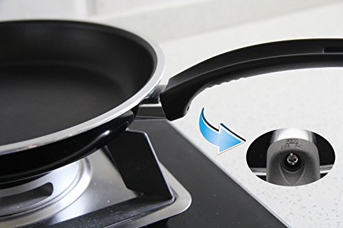EUROPEAN HANDLE DESIGN: - Handle design and Produced by LA TERMOPLASTIC F.B.M.-S.R.L .The screw and rivet fixedly connected to the pan and does not easy to loosen; Italian bakelite technology helps cook lovers to keep away from the heat, avoid slipping, and give cook lovers protections from burn.