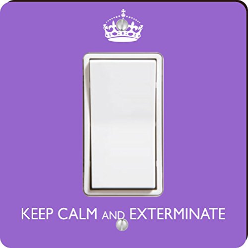 Studio : Rikki Knight LLC Publisher : Rikki Knight LLC Binding : Kitchen Product Description The Keep Calm and Exterminate SM Violet Color single rocker light switch cover is made of commercial vibrant quality masonite Hardboard that is cut into 5" Square with 1/8" thick material. The image is printed directly into the switch plate and not decoupage which make these suitable for use in any room in the home or workplace. These Light Switch Plates can also be matched up with other products we have such as Wall Clocks, Cutting Boards, Tiles, Wood Frames, etc. Please ensure you have at least 2" available space on each side of the frame. This Rikki knight Keep Calm and Exterminate SM Violet Color could be an ideal gift for all occasions! Disclaimer: All images are printed directly into the material - The Texture of the image will always be a flat surface. Any images that appears to be 3d, textured, or glittery are flat printed images and are proudly printed in the USA. 0