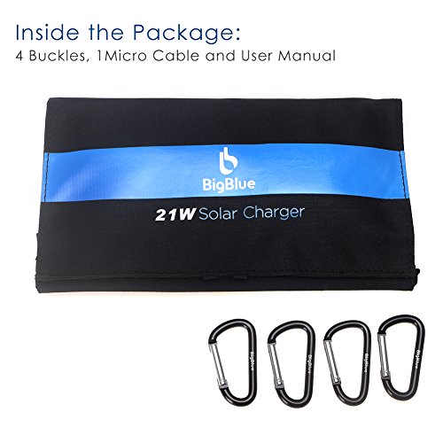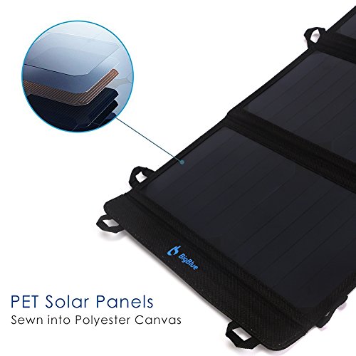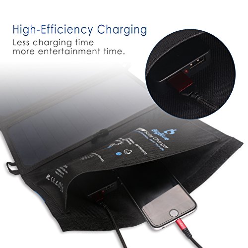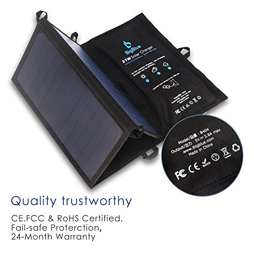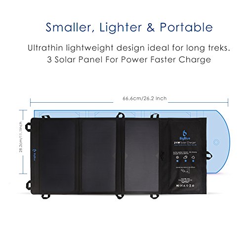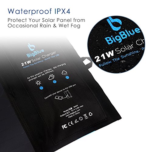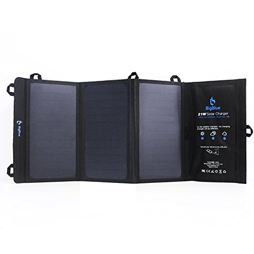 BigBlue 5V 21W Foldable Outdoor Solar Powered Charger With SunPower Solar Panels Dual USB Ports for iPhone iPad Samsung Galaxy LG Cellphones and Devices