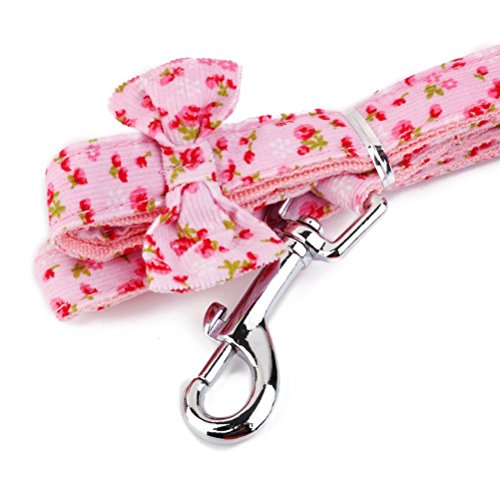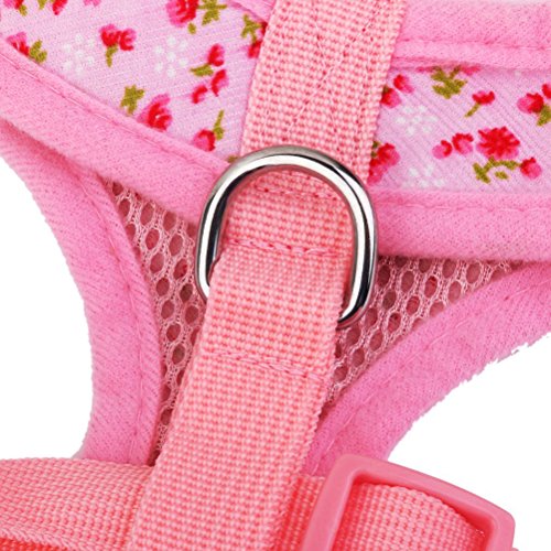 1 * Floral Pattern Tiny Small Dog Chest Strap Harness with Leash Lead - Size L (Pink) 0
