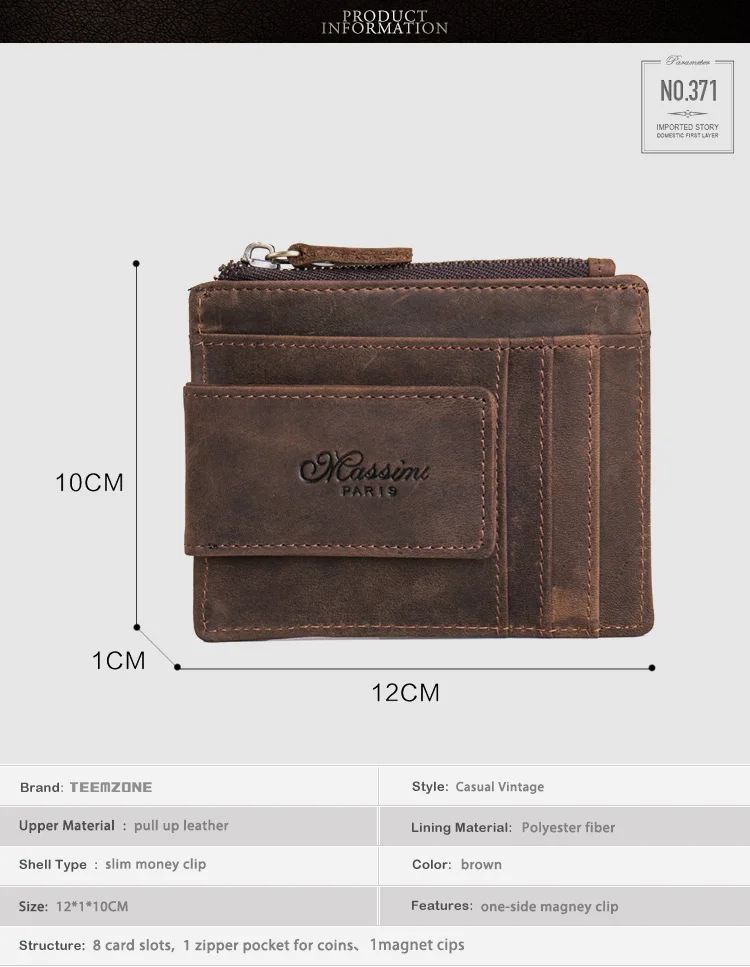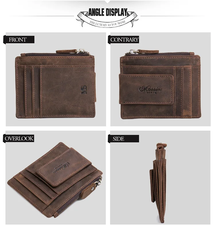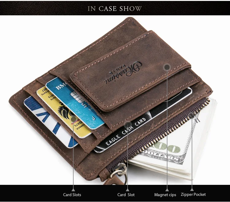 Feature:Super slim/Strong magnet money clip /zipper card holder