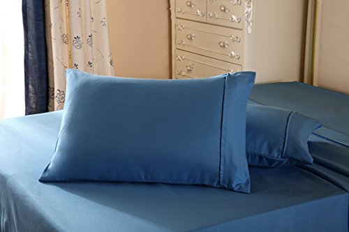 Queen Size Luxury 4pc Bed Sheets Set - 1 flat sheet 102"x90", 1 fitted sheet 80"x60", 2 pillowcases 20"x30". Deep pocket fitted sheet with elastic all around (not just the corners, like other sheets).