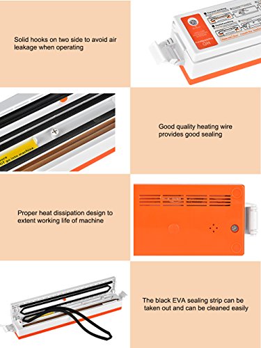 -. Feature : Reserve fresh and delicacy: Never worry about waste your favorite food, to maintain nutrition, avoid bacteria and keep health for family / Wide storage feature: You can use it to reserve many different kinds of food, not only for ordinary food such as meet, vegetables and fruit / Two ways of fresh reserve: Half vacuum packing and full vacuum packing with one machine / Suitable design and use friendly: The whole process of vacuum packing and seal is totally automatic / Low noise and safe structure: Significantly lower three types of noises wind, machine and vibration