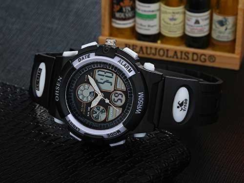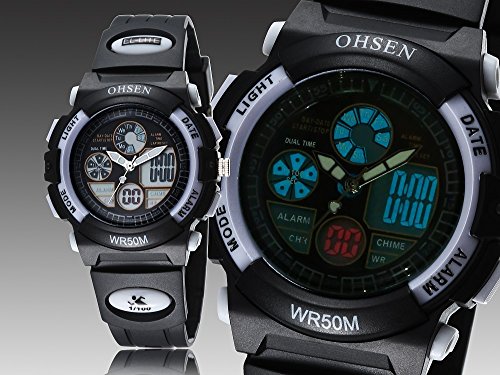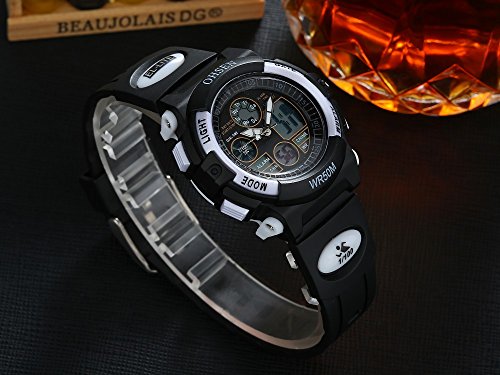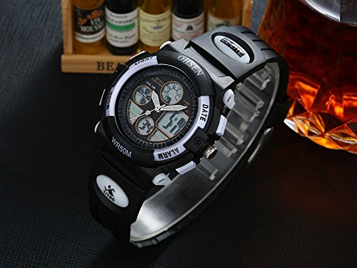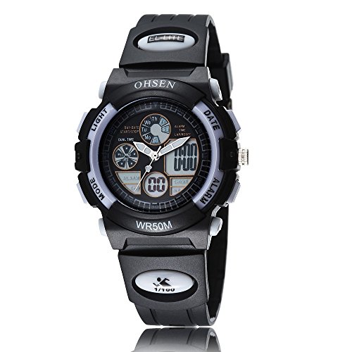 Kids Digital Watch,Women's Sport Dual Time Quartz LED Analog Digital Waterproof Watches for Boys/Girls/Children with Calendar/Alarm/Stopwatch-Black