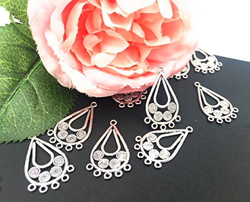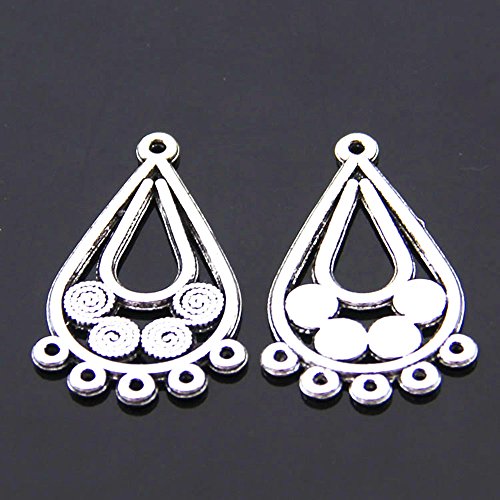 50pcs Tibetan Silver Multiloop Eardrop Shape Hollowed-out Charms Pendant Connectors for DIY Crafting, Jewelry Making Findings Accessories(Style 1#) By Alimitopia