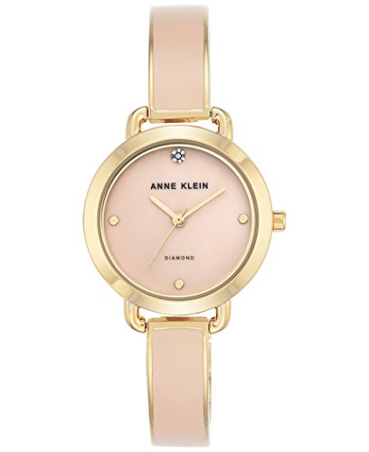 Anne Klein Women's Diamond Accent Blush Enamel & Gold-Tone Bangle Bracelet Watch 30mm AK/2438LPGB