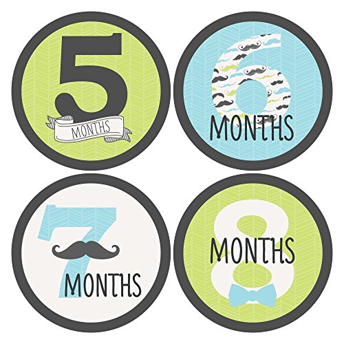 Monthly Baby Sticker Set - Dashing Little Man Mustache Party - 12 Piece