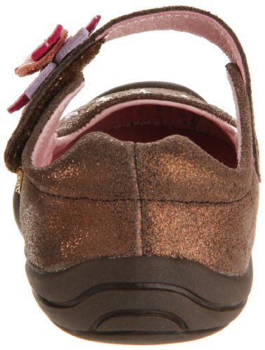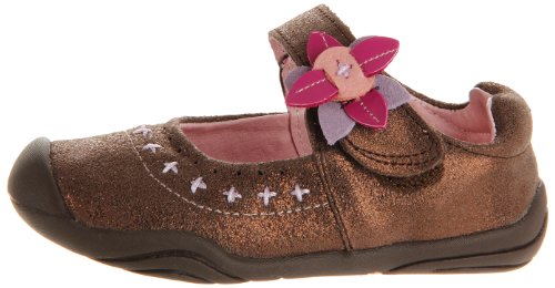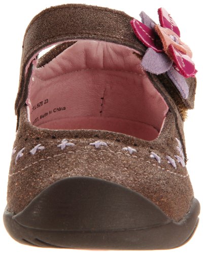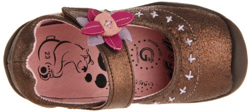 High fashion meets comfort with the Eva. The classic design in Chocolate Brown glitter features stitching across the top and a fun flower detail on the strap.