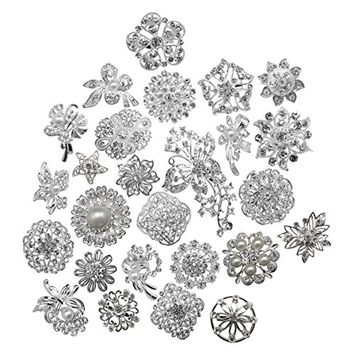 -. Title : L'vow Silver Color Sparking Wedding Bridal Crystal Pearl Brooches Bouquet Kit Pack of 30