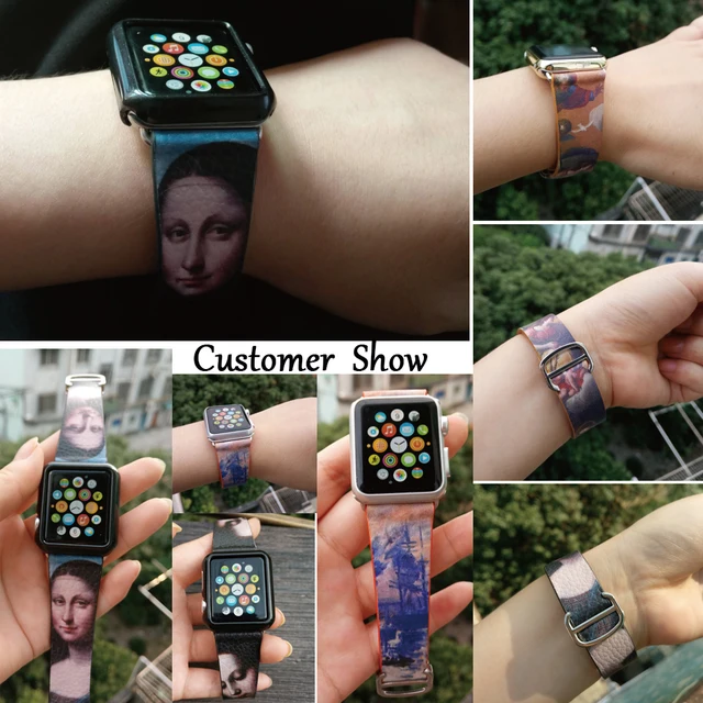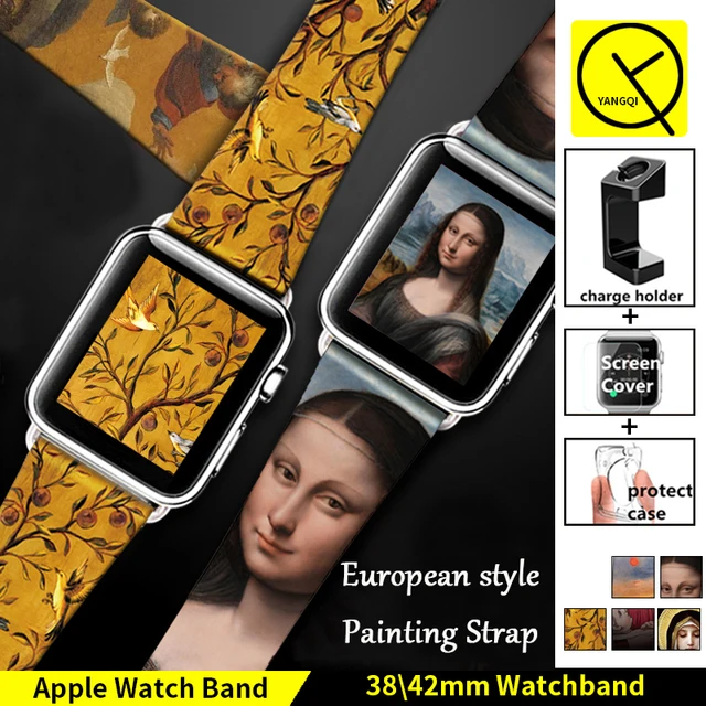 | [해외] 유럽 스타일 모나리자 그림 시계 줄 대한 apple watch series1/2 watchstraps 38 미리메터 42 미리메터 iwatch 팔찌 + 어댑터 + 선물 |
