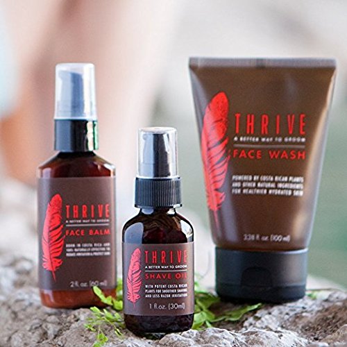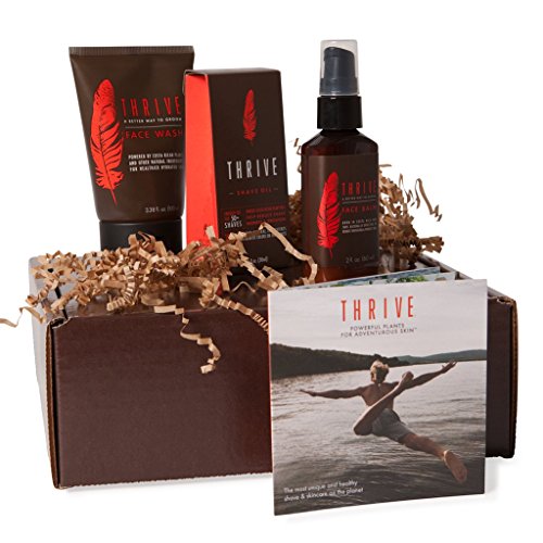 -. Feature : Includes full-size Thrive Face Wash (100 ml), Shave Oil (30 ml), and Face Balm (60 ml). / Arrives in attractive Thrive box with cool Mission Card. / Each product certified "Premium Bodycare" by Whole Foods Market for highest level of efficacy and safety. / No synthetic colors, fragrances, or ingredients. / 100% Satisfaction Guarantee. If you don't love your Thrive, we'll refund your purchase. Note: before using the Shave Oil included in this kit, we recommend that you conduct a 2-minute sensitivity test (more details in Safety Warnings below).
