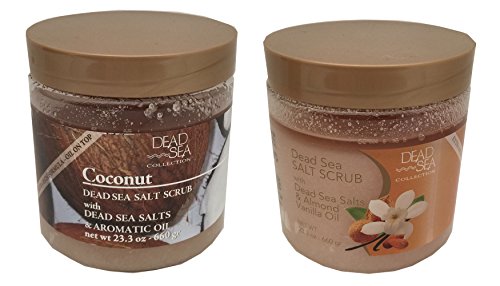 -. Binding : Misc. -. Brand : Dead Sea Premier -. EAN : 0762223993117 -. Feature : Includes one jar each of Coconut and Almond Vanilla / Extra rich formula-oil on top / Nurishing Scrub enriched with Dead Sea Salts and aromatic oils / Gently exfoliates your skin / Made in Israel -. IsAdultProduct : 0 -. Label : Dead Sea Premier -. Manufacturer : Dead Sea Premier -. MPN : GS003 -. PackageQuantity : 1 -. PartNumber : GS003 -. ProductGroup : Beauty -. ProductTypeName : BEAUTY -. Publisher : Dead Sea Premier -. Studio : Dead Sea Premier -. Title : Dead Sea Salt Scrub Two Piece Bundle with Almond Vanilla Oil 23.3 oz and Coconut 23.3 -. UPC : 762223993117