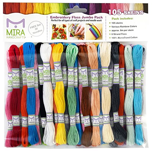 Premium Rainbow Color Embroidery Floss – Cross Stitch Threads – Friendship Bracelets Floss – Crafts Floss – 105 Skeins Per Pack and Free Set of Embroidery Needles