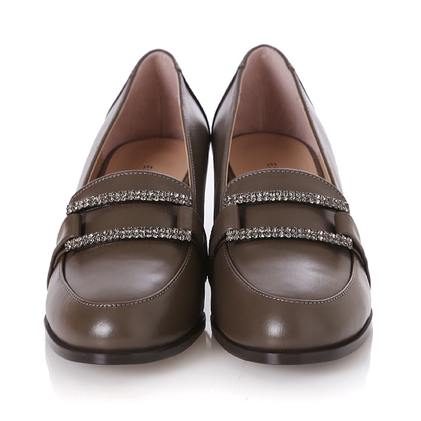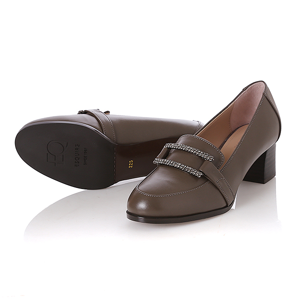 잔잔한 사각보석스톤을 발등장식으로 적용한 포인트장식 힐 슬립온 형태의 펌프스로 판매가 검증되어진 라스트를 적용하고 일반합성소재를 활요한 라이닝에서 탄성이 가미되어진 스판합성 라이닝을 적용하여 유연성을 업그레이드하여 착화감을 증대시킴.