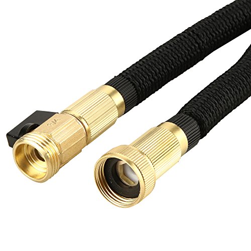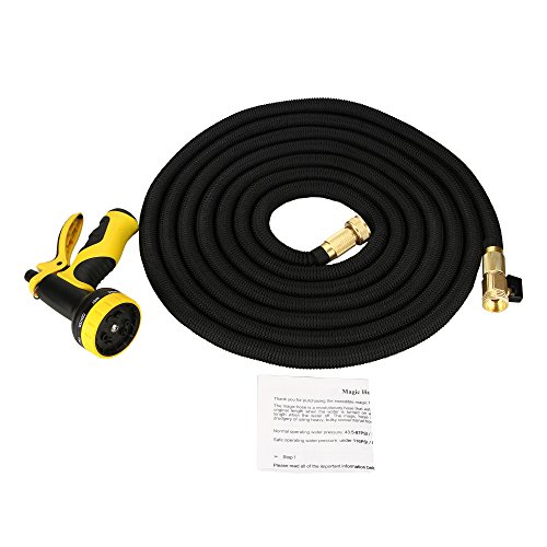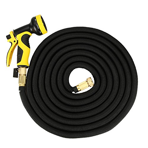 HQMaster 50FT Garden Hose Expandable Hose Flexible Water Hose High Pressure Expanding Watering Hose, Antiskid Rubber Handle, Solid Brass Connector, 9 Patterns Sprayer Nozzle (Black)