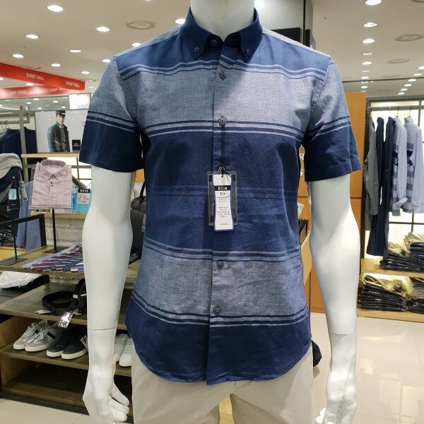 . 기본 스타일의 버튼다운 남방 입니다. 볼드한 가로 요꼬스트라이프를 젊은 룩킹의 남방입니다