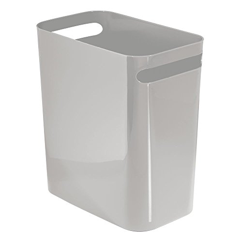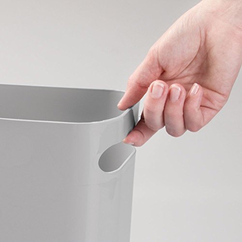 mDesign Slim Rectangular Small Trash Can Wastebasket, Garbage Container Bin with Handles for Bathrooms, Kitchens, Home Offices, Dorms, Kids Rooms — 12” high, Gray