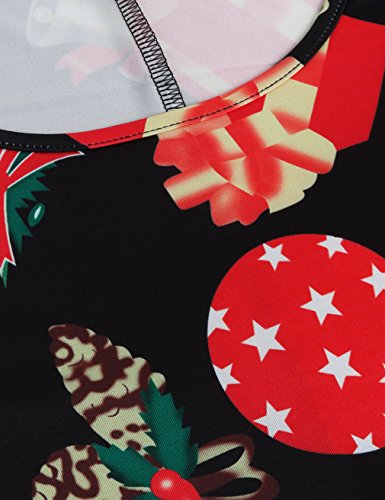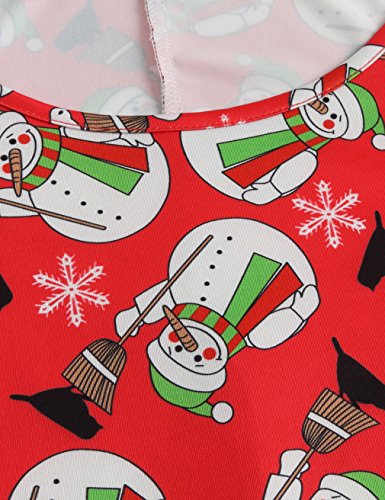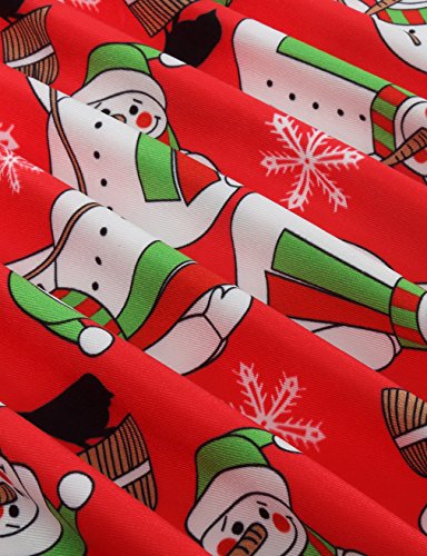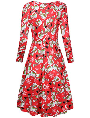 FANSIC Dresses for Women for Christmas, Swing Dress Printed A Line Tea Dress Red Large