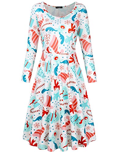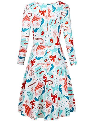 FANSIC Women's Long Sleeve Round Neck Christmas Party Dress White S