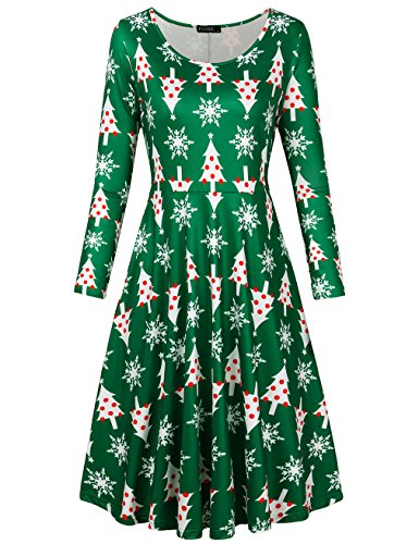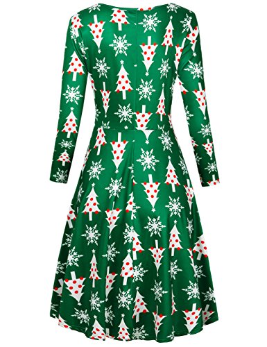 FANSIC Christmas A Line Dresses for Women, Womens Long Sleeve Casual Tunic Party Dress Green Tree L