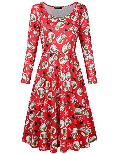 FANSIC Christmas Dresses for Women, Women's Long Sleeve Santa Claus Round Neck Christmas Cute Best Quality Party A Line Dress Red Medium