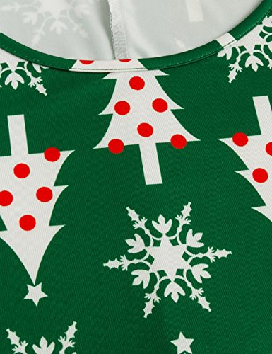 Dress for Christmas Party Women,FANSIC Women's Long Sleeve Round Neck Dress Above Knee Length Green Tree Small