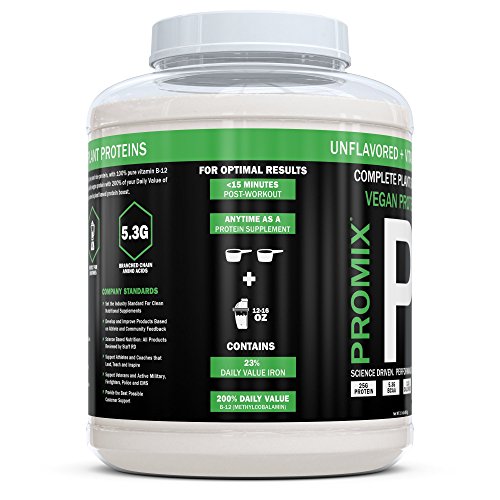 ProMix Vegan combines pea and rice protein, with 100% pure Vitamin B-12 (methyl cobalamin) to create a complete and highly-bioavailable vegan protein with 200% of your Daily Value of B-12in every serving. Non-GMO verified peas and whole grain brown rice are 100% mechanically processed without enzymes, hexane, or bleaching agents and then blended with non-GMO 100% B-12. Each serving of ProMix Vegan contains 25g of complete protein and 5.3 grams of Branched Chain Amino Acids. ProMix Vegan + B-12 uses only non-GMO, non-synthetic 100% B-12 (no carriers or fillers). Methyl cobalamin is the most bioavailable form of B-12. Perfect for a shaker bottle or blender. FOR OPTIMAL RESULTS: Mix 2 scoops with 12-16oz of water our your favorite beverage within 15 minutes of finishing your workout AS A PROTEIN SUPPLEMENT: Mix 2 scoops with 8-12oz of water 1-3x/day 100% Vegan No Artificial Flavors, Colors, or Sweeteners No Bleaching No Soy or Gluten Third-Party Independent Testing No GMO Ingredients ProMix is 100% Made in the USA. Supporting animal welfare, small farms, and sustainable farming. Promix exceeds all testing standards for purity and performance. All ProMix products are tested by independent third party labs for heavy metals and gluten. No Soy or Gluten No Artificial Flavors, Colors, or Sweeteners No Antibiotics No GMO IngredientsFeature
