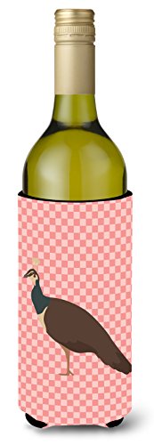 Caroline's Treasures BB7927LITERK Indian Peahen Peafowl Pink Check Decorative Bottle Hugger, 750 ml, Multicolor