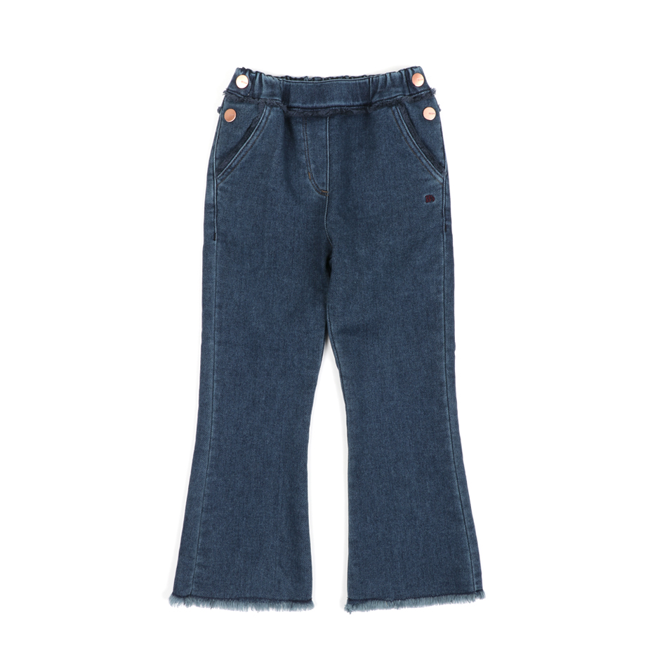 여아 벨버틐 데님 팬츠 아이템입니다. 이번 시즌 트랜디하게 제안하는 나팔바지 라인의 데님 팬츠 아이템으로 수술처리하여 에스닉한 느낌을 준 타운스러운 여아데님 팬츠 아이템으로 새로운 스타일링을 버여주는 이번 시즌 필수 아이템으로 제안합니다. 발목정도오는 기장감으로 양말과 함께 코디시 더욱 트랜디하면서도 경쾌한 여아이미지를 보여주며 소프트한 터치감으로 착용감이 좋으며 통고무줄 처리되어 입고 벗고 용이한 활용도 높은 데님 팬츠 아이템입니다.