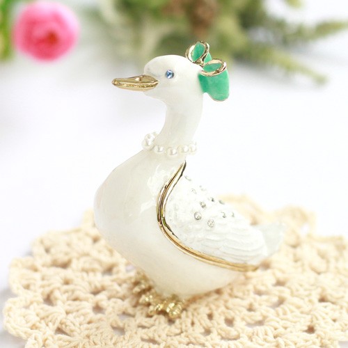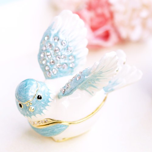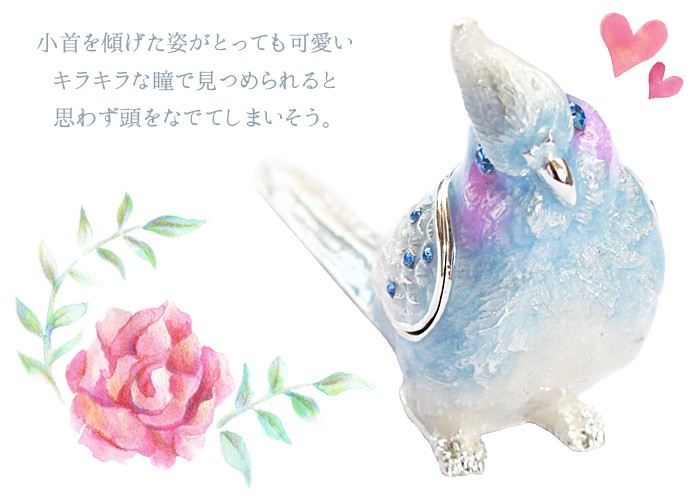 | ジュエリーボックスと言えば、指輪やピアス、ネックレスなどのアクセサリーを入れる引き出し型のケースを思い浮かべる方が多いかもしれません。 ピィアースのジュエリーボックスは、動物や花などをモチーフに作られ、合金製でずっしりとした重さがあります。また高品質のクリスタルガラスを贅沢に使用。まるでジュエリーボックスそのものが宝石のような、高級感溢れる仕上がりです。 小物入れとしても使えるように開閉口には磁石が取り付けてあり、アクセサリーなどなくしやすいアイテムの収納ができます。キラキラと美しく輝く宝石箱は、そのまま飾って楽しめるインテリア雑貨として多くの方に愛されています。 国内トップクラスのジュエリーボックスメーカーであるピィアースは、2004年ごろから本格的に宝石箱の製造を始め、現在のジュエリーボックスはなんと300種類以上。大規模展示会でもご好評いただいており、全国有名百貨店でも販売されています。 自社工場でひとつひとつ丁寧に手作りし、原型作成、研磨、加工、着色、小さなクリスタルガラスの取り付けなども全て手作業で行われるこだわりのハンドメイド品。完成後は厳しい検品の後、丁寧に梱包作業をしお客様にお届けしております。 ピィアース商品は、全国有名百貨店および全国有名宝石店チェーンにてお取り扱いいただいている高品質商品です。 ★自分へのご褒美に…コレクションして並べて飾ると、さらにかわいらしさUP! ★恋人へのプレゼント…中にアクセサリーを入れて、サプライズな贈り物として ★家族への感謝ギフト…お母さんや姉妹へ、日頃のありがとうの気持ちを込めて ★誕生日プレゼント…お友達の喜ぶ顔が見たいから、いつもと違うキラキラギフトを ★小さな女の子へ…まるでお姫様が使っているようなキラキラ宝石箱は女の子の憧れ! |
